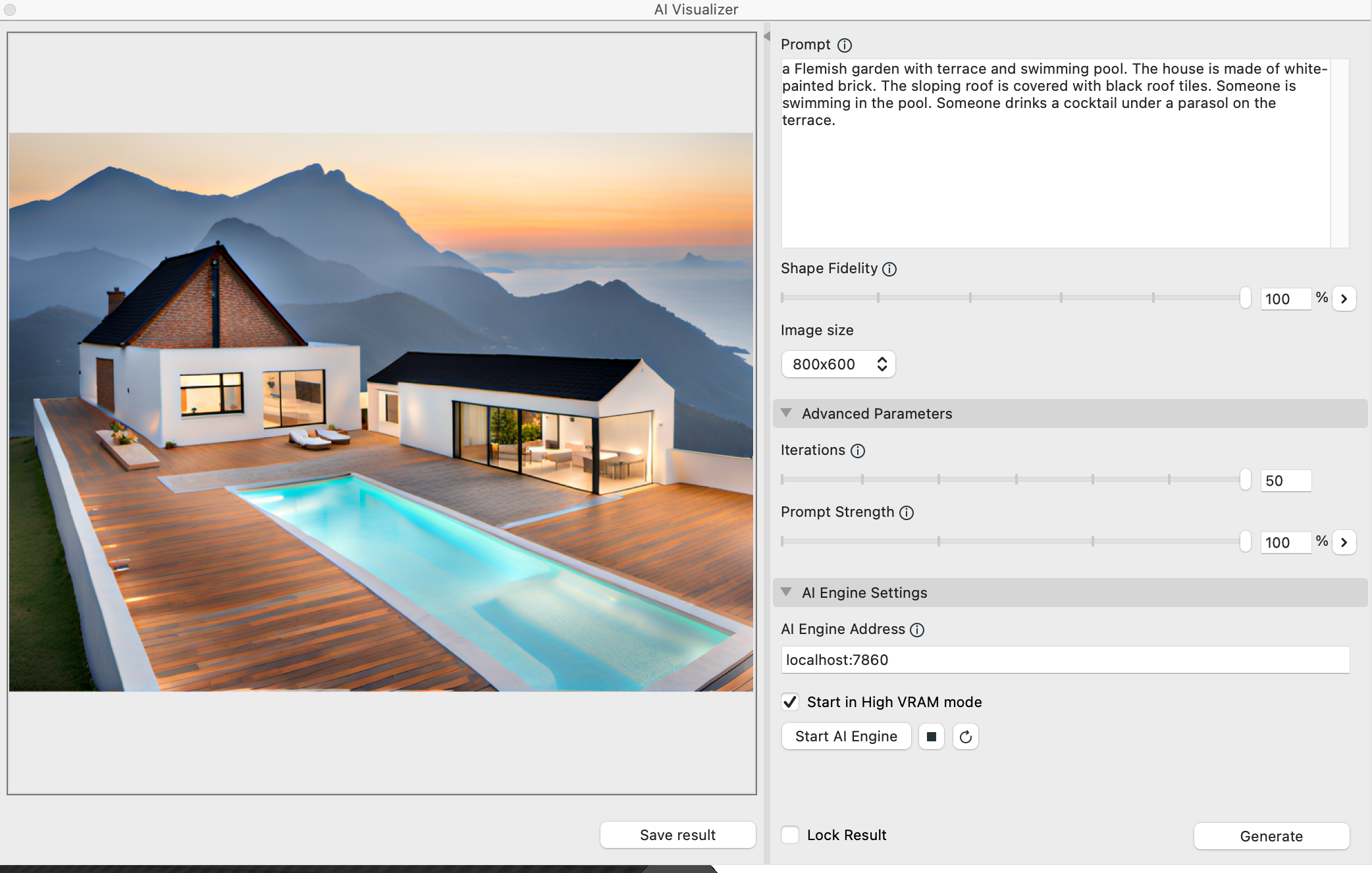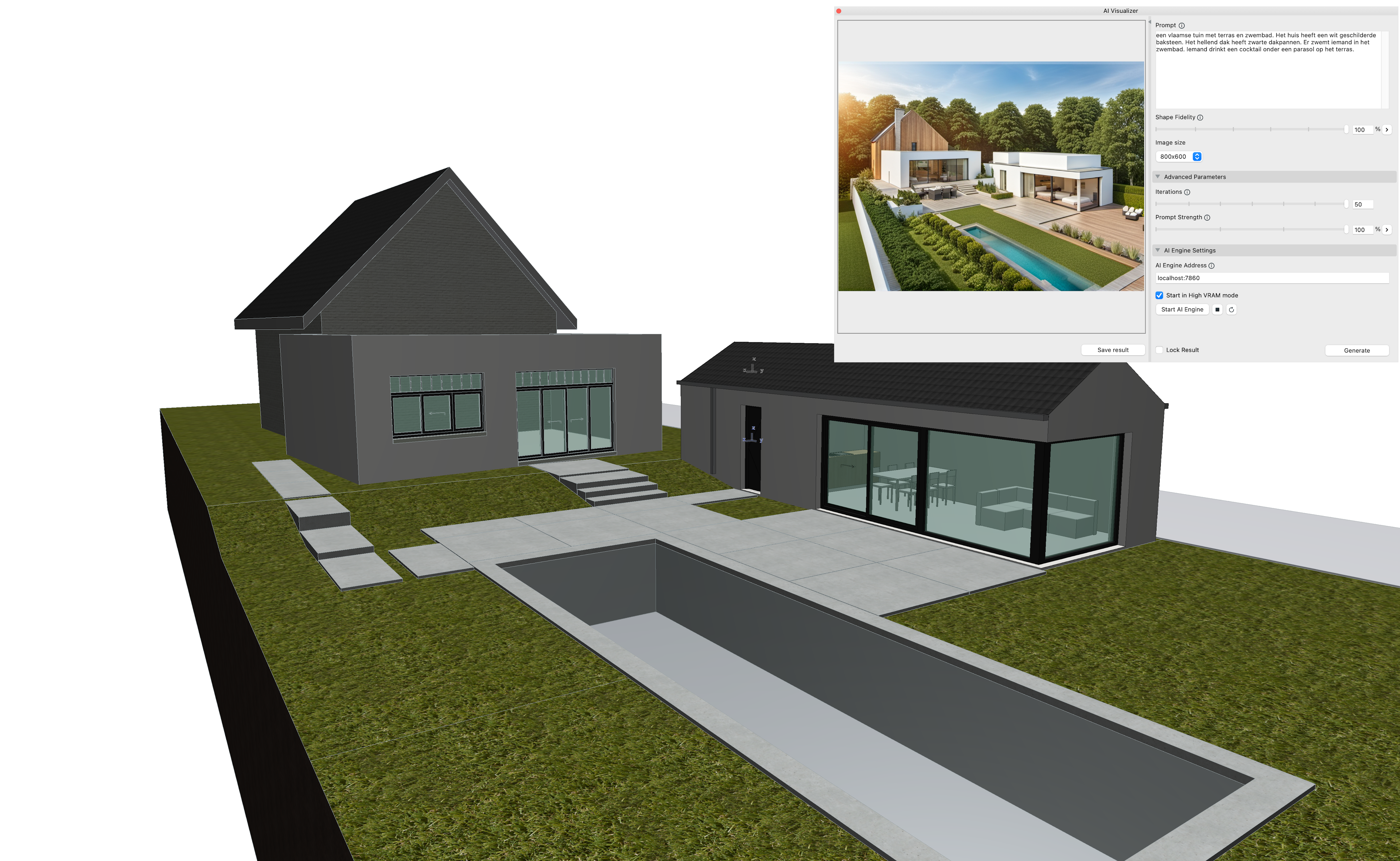 Omdat we al onze ontwerpen tekenen in een 3D-model kunnen we dit model gebruiken om een standpunt op het model te selecteren en dan aan de slag te gaan met een AI-visualizer.
