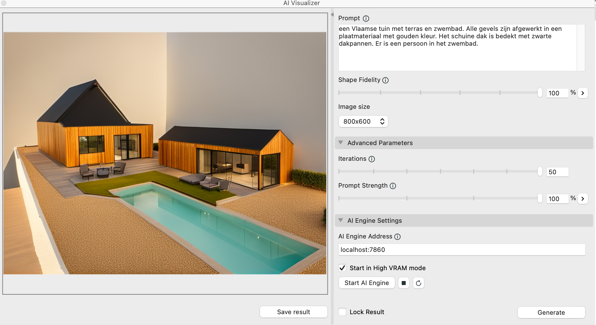 Máár in het ontwerpproces kunnen de beelden nu al een waarde hebben. We zullen de toepassing daarom voorlopig enkel nog op deze manier inzetten. We zijn benieuwd welke mogelijkheden AI in de toekomst nog zal bieden en houden zeker en vast vinger aan de pols !